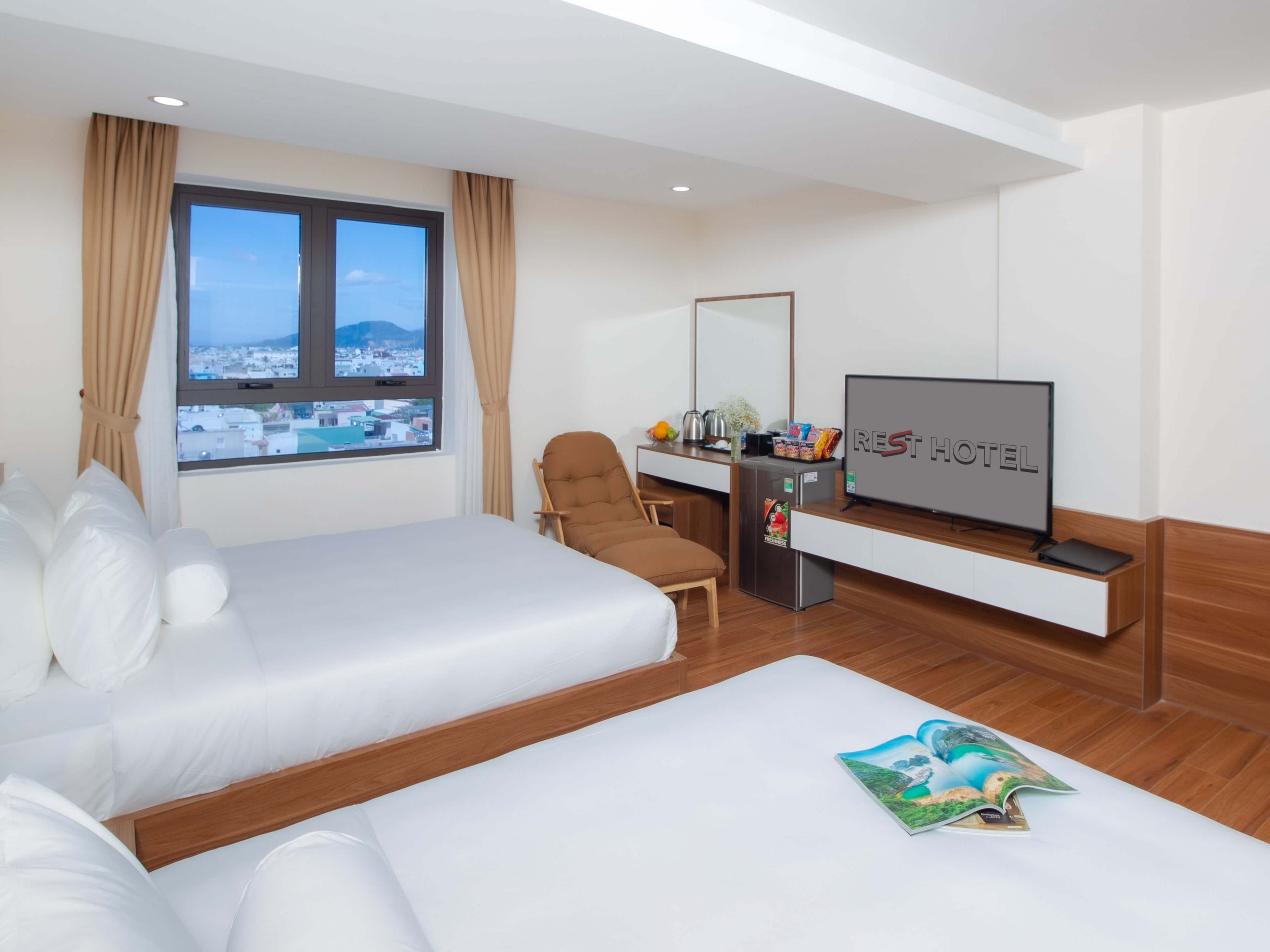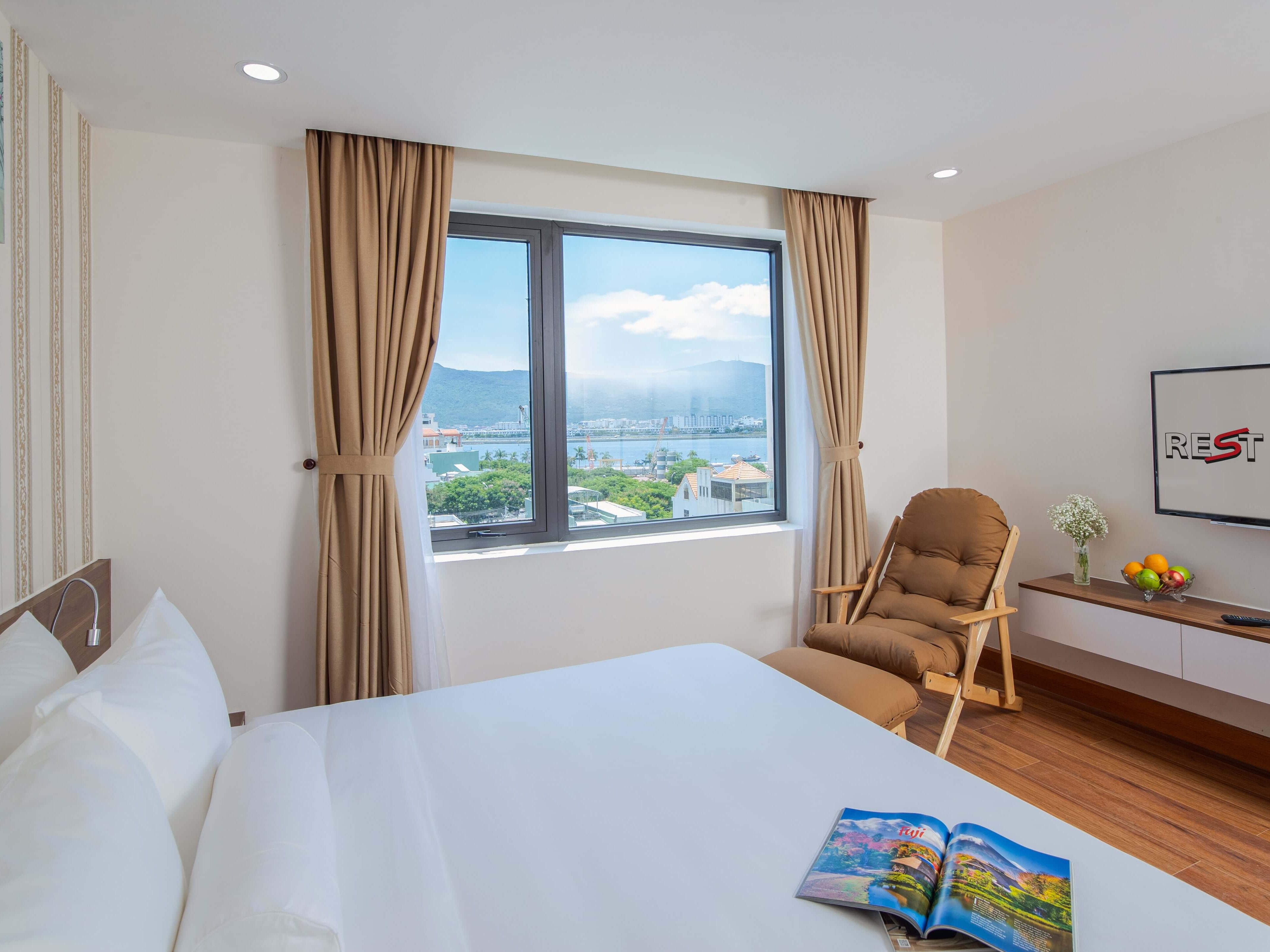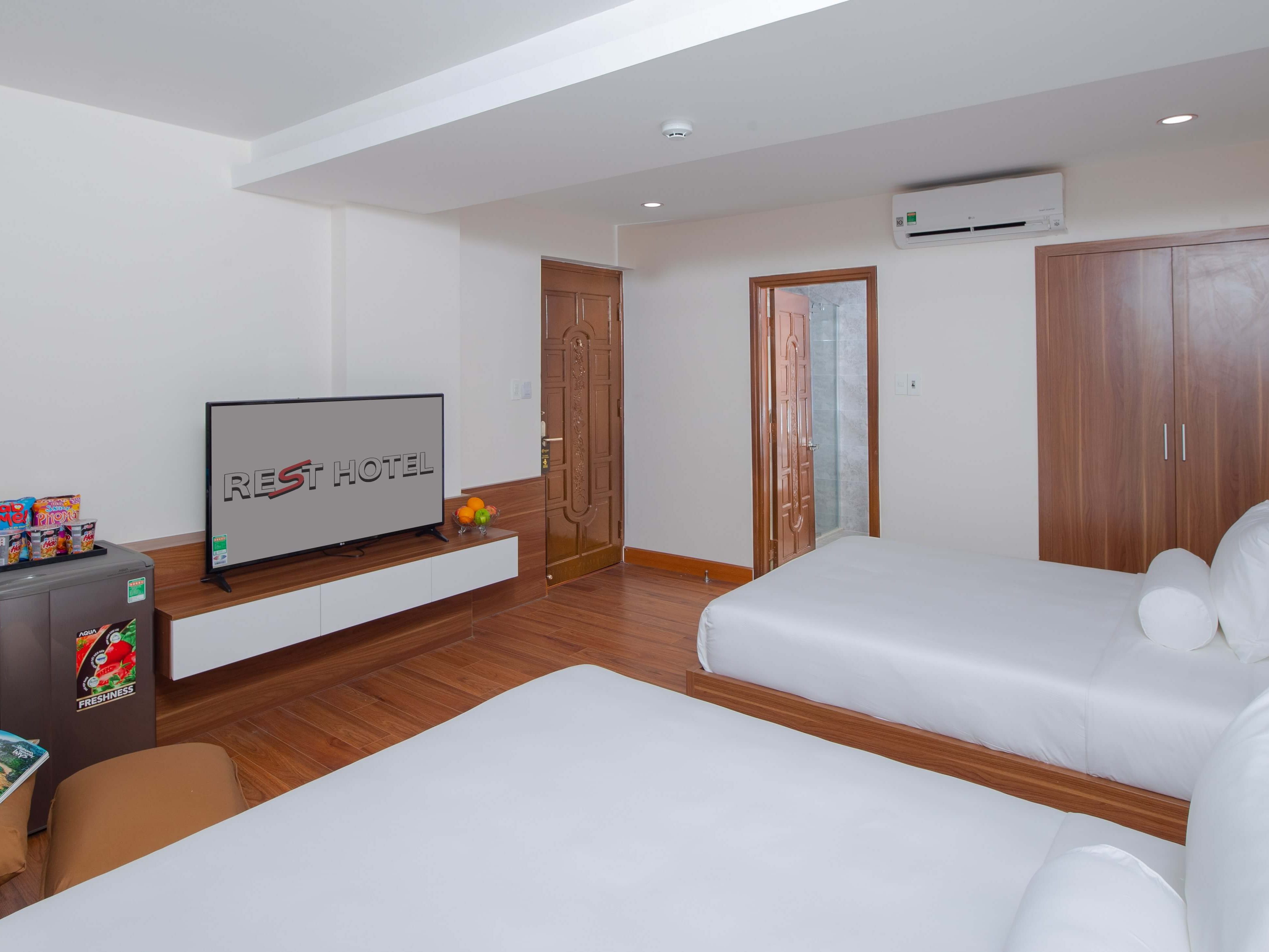 Chỗ ở sang trọng và đẳng cấp tọa lạc trung tâm của Đà Nẵng! Cho dù bạn đang ở đây với chúng tôi để kinh doanh hoặc tận hưởng kỳ nghỉ được chờ đợi từ lâu của bạn, thì với 51 phòng nghỉ hiện đại và đẹp mắt, khách sạn REST cung cấp các phòng với tầm nhìn tuyệt đẹp ra sông Hàn hoặc quang cảnh thành phố luôn chờ đón bạn. Được trang bị bàn làm việc ngăn nắp, giường và nệm thoải mái, phòng tắm riêng trang nhã và các tiện nghi khác, mỗi phòng đều là một thế giới nhỏ để đảm bảo kỳ nghỉ của quý khách trở nên đáng nhớ hơn bao giờ hết. Quý khách có thể nhận phòng và tận hưởng Wi-Fi tốc độ cao miễn phí trong thời gian lưu trú của mình. Hãy khám phá những không gian đáp ứng sở thích riêng của bạn trong suốt thời gian bạn ở thành phố Đà Nẵng tại REST.